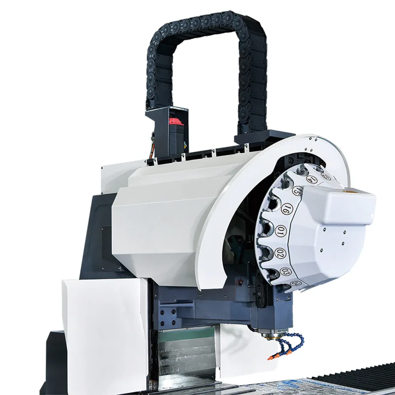 Den portalagtige struktur giver stærk mekanisk støtte til spindelsamlingen og bearbejdningshovedet. Skærekræfterne fordeles jævnt gennem brorammen, hvilket hjælper med at opretholde bearbejdningsstabiliteten under tunge fræseoperationer. Dette strukturelle design gør det også muligt for maskinen at håndtere krævende bearbejdningsopgaver, der involverer store metalkomponenter.