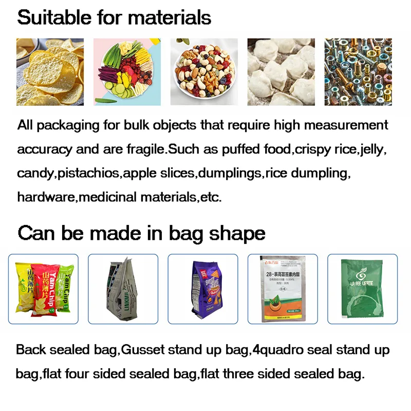 Lodrette pakkemaskiner kan pakke pulvere, granulat, snacks, korn, hardwaredele og små industrielle komponenter.